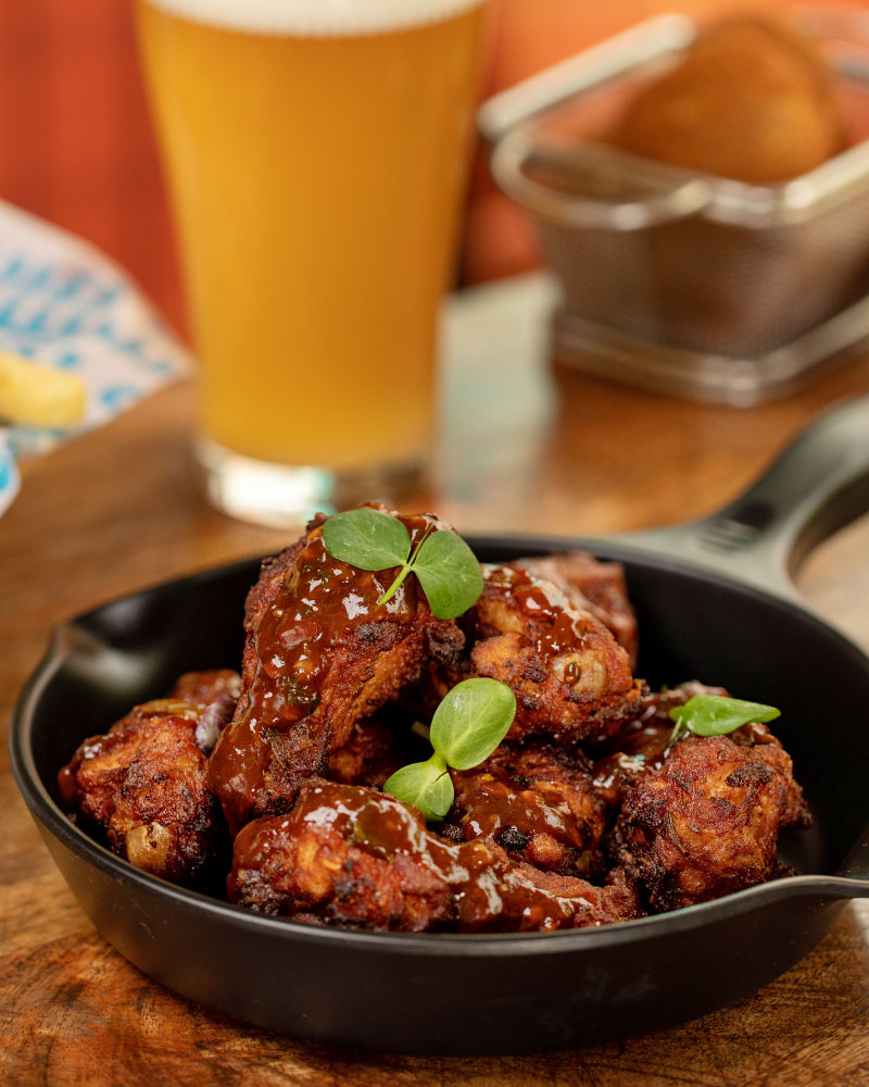 Crispy fried chickpeas glazed with spicy BBQ sauce.